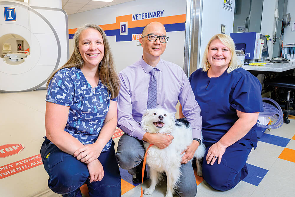 Dogs have walked alongside people for uncounted centuries, as helpful hunters and beloved pals. Now, a special new role for canines has emerged as cancer patients whose treatment can help humans. Certain cancers in dogs and cats evince close genetic resemblances to those types of cancers in people. Promisingly, “we are finding that some of these cancers respond similarly to the same therapies,” observes Tim Fan, PHD ’07 VM, a Vet Med professor who is among the U. of I. researchers conducting investigations under the auspices of IGB on the health connections between pets and people.