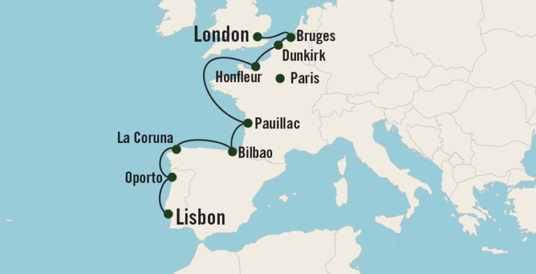 Set sail on a mesmerizing 10-night journey aboard Oceania Cruises’ Insignia and let the rhythm of the ocean guide you to some of Europe’s most enchanting destinations. Begin your journey in Lisbon and make way for Oporto, where the aroma of rich port wine fills the air and the Douro River winds through terraced vineyards. Sail north to La Coruna and marvel at its ancient Roman lighthouse and bustling fish markets. Next, visit Bilbao, home to the popular Guggenheim Museum, a museum of modern and contemporary art. Cross the border into the heart of France, where the charming city of Pauillac awaits. Wander the streets of Paris and experience unparalleled fashion and architecture. In Dunkirk, delve into World War II history before sailing to the medieval city of Bruges. Finally, conclude your journey in London, home to the famed Buckingham Palace and Tower of London.